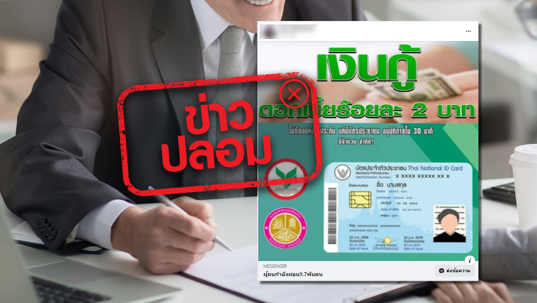 ข่าวปลอม อย่าแชร์! ธ.ออมสิน ร่วมกับบริษัทเอกชน ปล่อยเงินกู้ ดอกเบี้ยร้อยละ 2 บาท