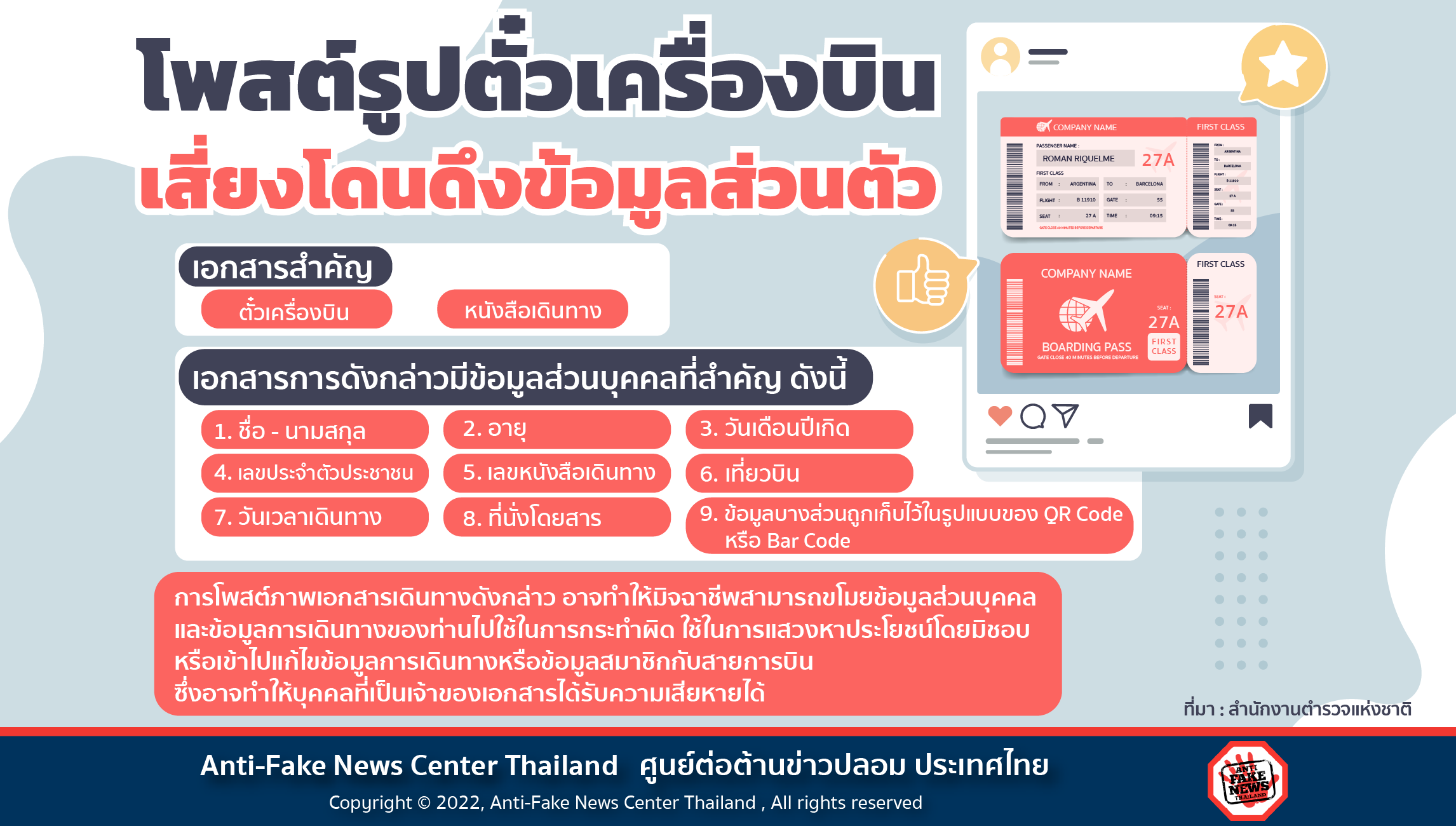เนื่องด้วยปัจจุบันสถานการณ์การระบาดของโรคโควิด 19 คลี่คลายลง และมีแนวโน้มที่ดีขึ้น ส่งผลให้ผู้ติดเชื้อและผู้เสียชีวิตลดลง ประชาชนสามารถใช้ชีวิตประจำวันและออกเดินทางไปท่องเที่ยวในสถานที่ต่าง ๆ ทั้งในประเทศและต่างประเทศมากขึ้น ซึ่งพบว่ามีพี่น้องประชาชนบางส่วนได้โพสต์ภาพของเอกสารสำคัญที่เกี่ยวข้องกับการเดินทาง เช่น ตั๋วเครื่องบิน (boarding pass) และหนังสือเดินทาง ซึ่งเอกสารการดังกล่าวในปัจจุบัน มักจะมีข้อมูลส่วนบุคคลที่สำคัญ เช่น ชื่อ-นามสกุล อายุ วันเดือนปีเกิด เลขประจำตัวประชาชน เลขหนังสือเดินทาง เที่ยวบิน วันเวลาเดินทาง ที่นั่งโดยสาร เป็นต้น อีกทั้งยังมีการเก็บข้อมูลบางส่วนไว้ในรูปแบบของ QR Code หรือ Bar Code อีกด้วย