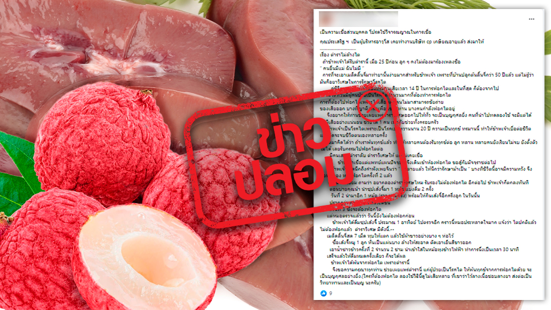ตามที่มีการแชร์ข้อมูลสุขภาพในสื่อออนไลน์เกี่ยวกับประเด็นเรื่องรักษาโรคไต โดยไม่ต้องฟอกไต ด้วยลิ้นจี่และเซี่ยงจี๊หมู ศูนย์ต่อต้านข่าวปลอมได้ดำเนินการตรวจสอบข้อเท็จจริงกับกรมการแพทย์แผนไทยและการแพทย์ทางเลือก กระทรวงสาธารณสุข พบว่าประเด็นดังกล่าวนั้น เป็นข้อมูลเท็จ