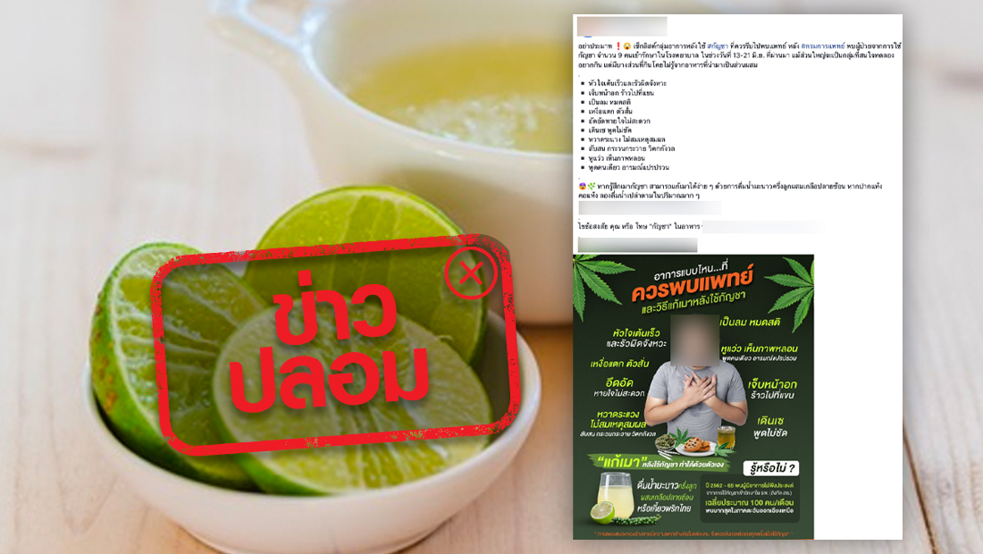 ตามที่มีข้อความในประเด็นเรื่องดื่มน้ำมะนาวแก้อาการเมากัญชา ทางศูนย์ต่อต้านข่าวปลอมได้ดำเนินการตรวจสอบข้อเท็จจริงโดยสถาบันบำบัดรักษาและฟื้นฟูผู้ติดยาเสพติดแห่งชาติบรมราชชนนี (สบยช.) กรมการแพทย์ กระทรวงสาธารณสุข พบว่าประเด็นดังกล่าวนั้น เป็นข้อมูลเท็จ